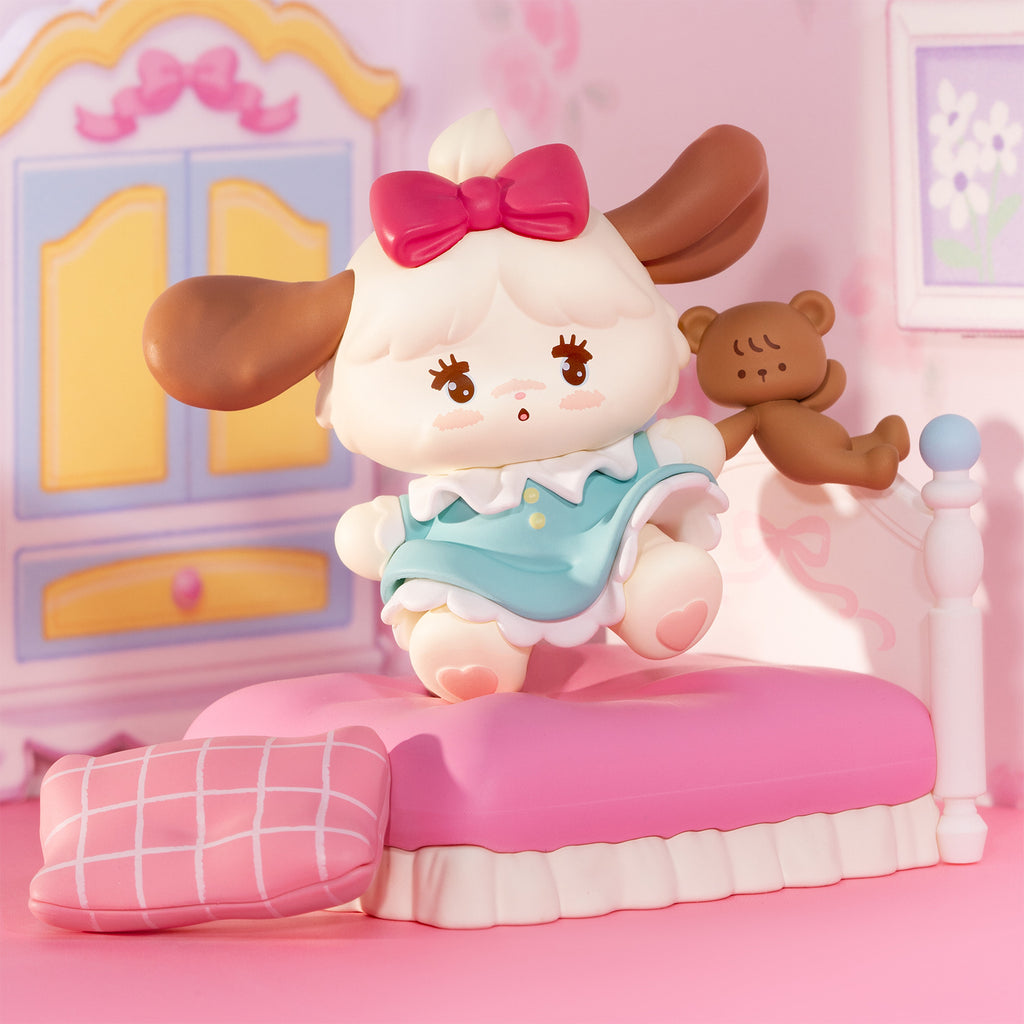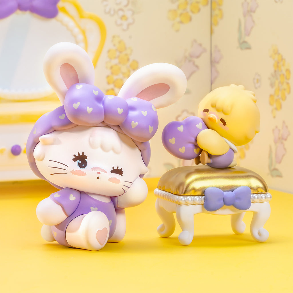 In deze serie zitten zes reguliere dierfiguurtjes en één ultra-zeldzame geheime met een kans van 1 op 72. Dat is de Bed Bouncer Mikko! Een hondje met lange flaporen dat vrolijk op een roze bed springt. Maar ook de andere in de serie zijn leuk. Maak kennis met Mousse de Trouble Maker, de witte kat met roze strikjes die nét een vaas omgooit (oeps, gelukkig niet stuk!). Of Get Fancy, het konijntje dat een chic krukje met gouden kussentje heeft, ze maakt zichzelf mooi met paarse strikken. Bear Companion heeft berenslippers én haar eigen teddy, want alleen slapen is soms best een beetje eng, toch?