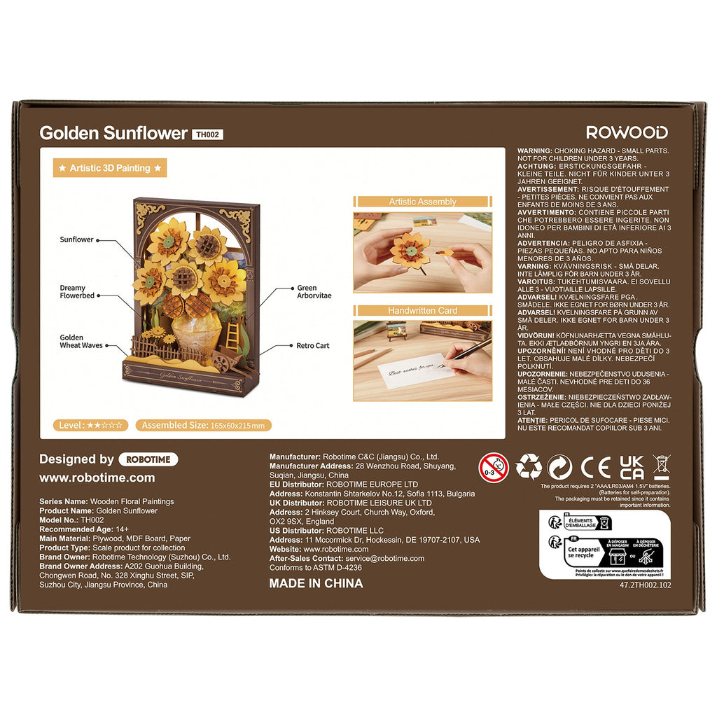 Het bouwproces is een plezierige ervaring op zich. Met 266 zorgvuldig lasergesneden houten stukjes, die zonder lijm in elkaar passen, is deze puzzel geschikt voor zowel beginners als ervaren knutselaars vanaf 14 jaar. Binnen ongeveer 2 uur zie je hoe de zonnebloem tot leven komt, compleet met verstelbare steelhoogte en bloemrichting, zodat je je eigen unieke bloemstuk kunt creëren. Het duurzame lindehout zorgt voor een stevig en langdurig resultaat, terwijl de levendige kleuren een vleugje natuur in je interieur brengen. Doe je 's avond de ledverlichting aan, dan komt het goudgele pas echt goed tot zijn recht.