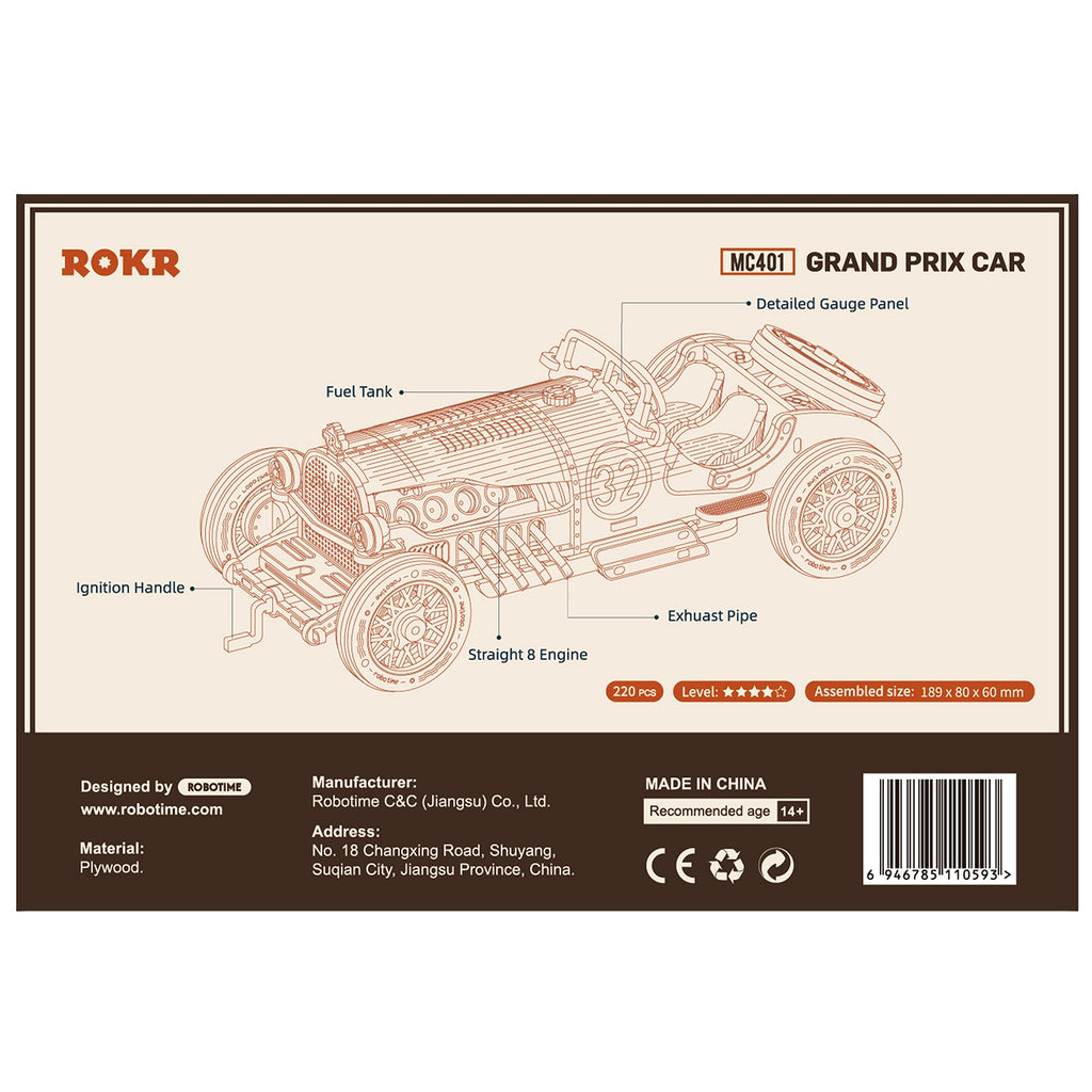 Grand prix racewagen, retromodel Robotime