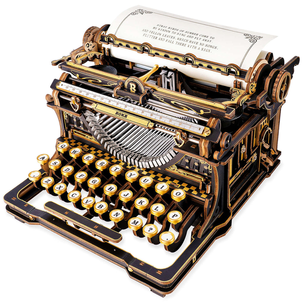 Maak nu je gaafste home-decoratie! De Mechanical Typewriter (Classic Version), een vintage typemachine van hout met een ROKR bouwpakket!