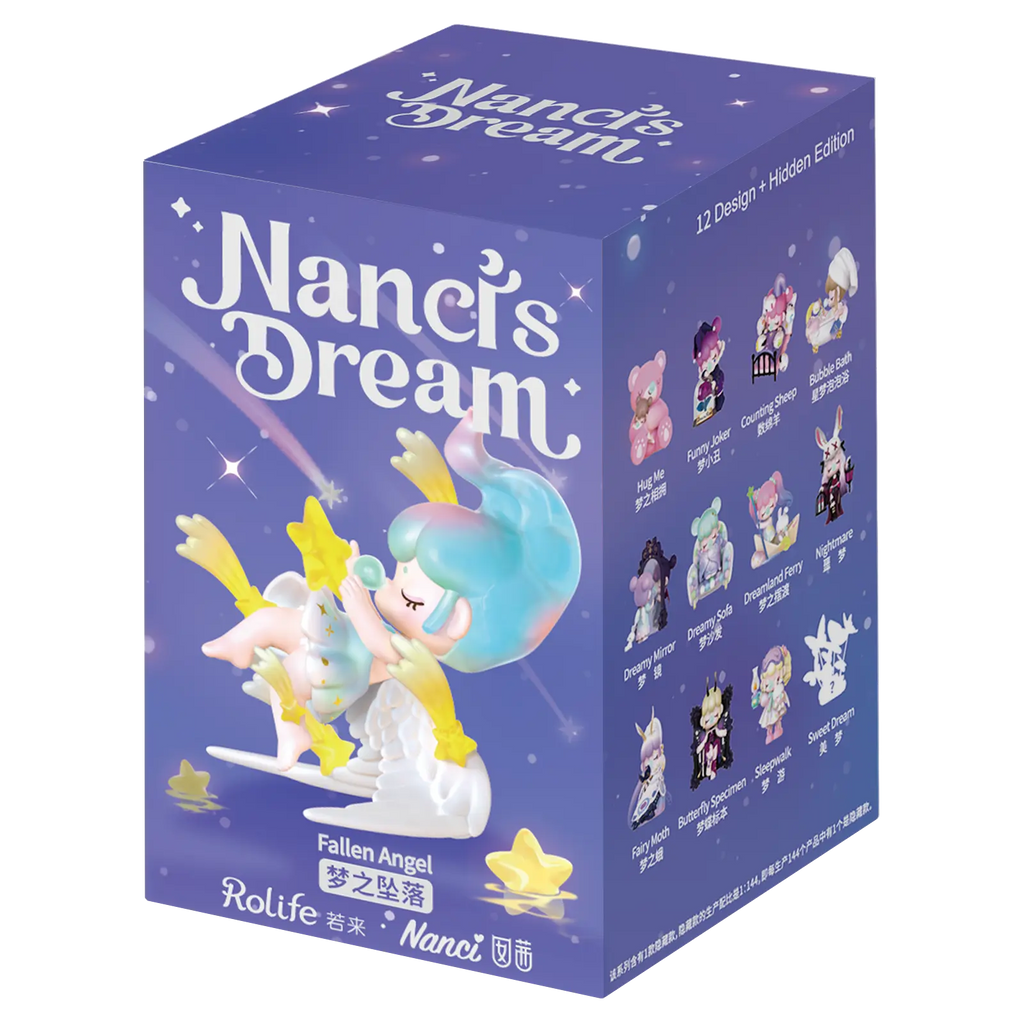 Welkom in Nanci’s droomwereld, waar Nanci haar dromen uitbeeldt en fantasie en werkelijkheid in elkaar overvloeien! In de Rolife Nanci Dream-serie komt elk van de 13 figuurtjes rechtstreeks uit haar slapende fantasie. Blind boxing zorgt voor de magie, want op elke doos staat Nanci Fallen angel en je weet nooit welke droom jij te pakken hebt tot je de doos opent! Misschien dobbert Nanci met haar witte konijntje in een bootje van papier of blaast ze vrolijk bubbels in haar bad vol schuim. Elk moment van unboxen voelt voor jou als een dromerig avontuur vol spanning en verrassing.