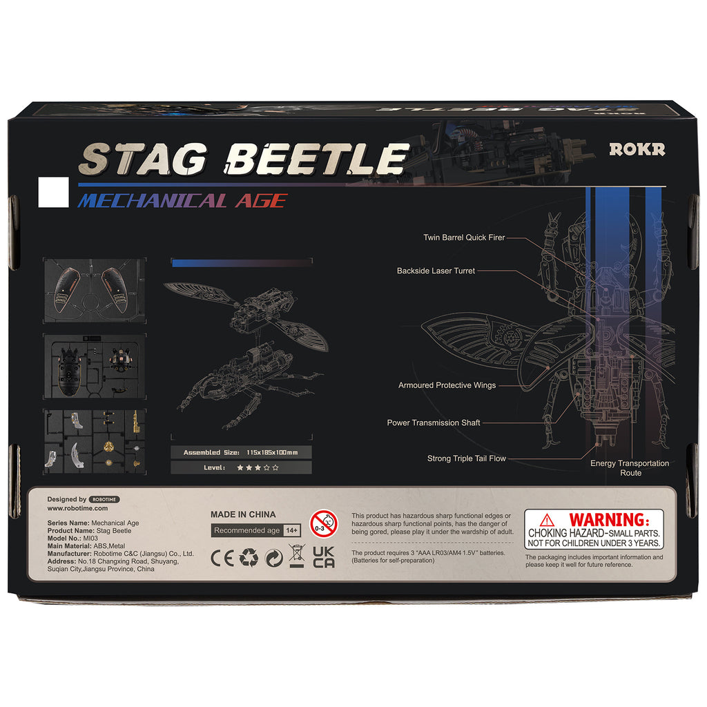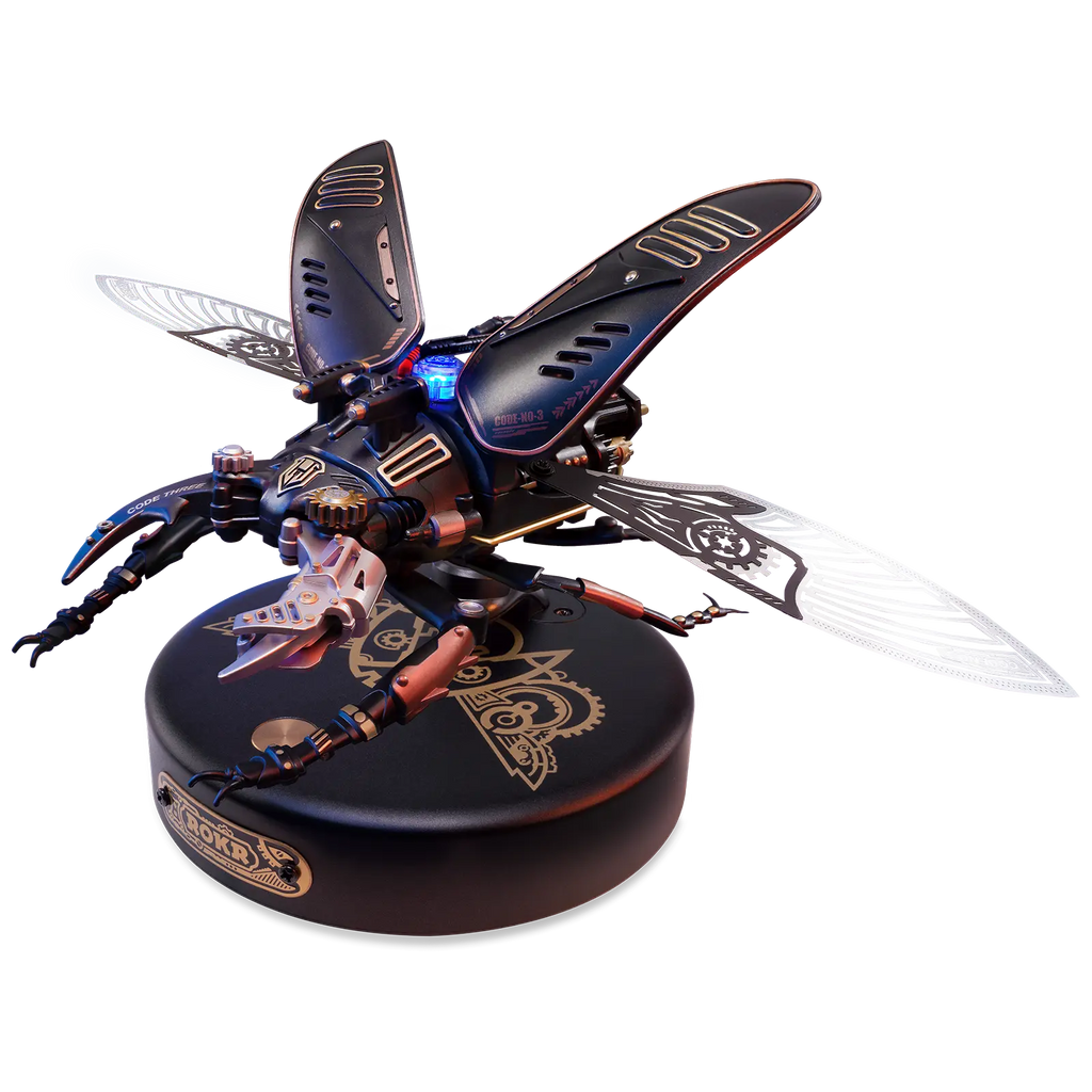 Dit bouwproject is gebaseerd op werkelijke insecten. Je zult versteld staan van de mooie details die de kevers ook in het echt hebben. Maar eh, wat is dan die bonus? Nou, dit insect kan niet alleen 920 keer per minuut trillen met zijn vleugels, hij kan ook iedere twee seconden bijten met zijn kaken! Stoerder kan bijna niet. O, wacht achter aan zijn schild draait nog een wapen en blauw licht schijnt bovenop.