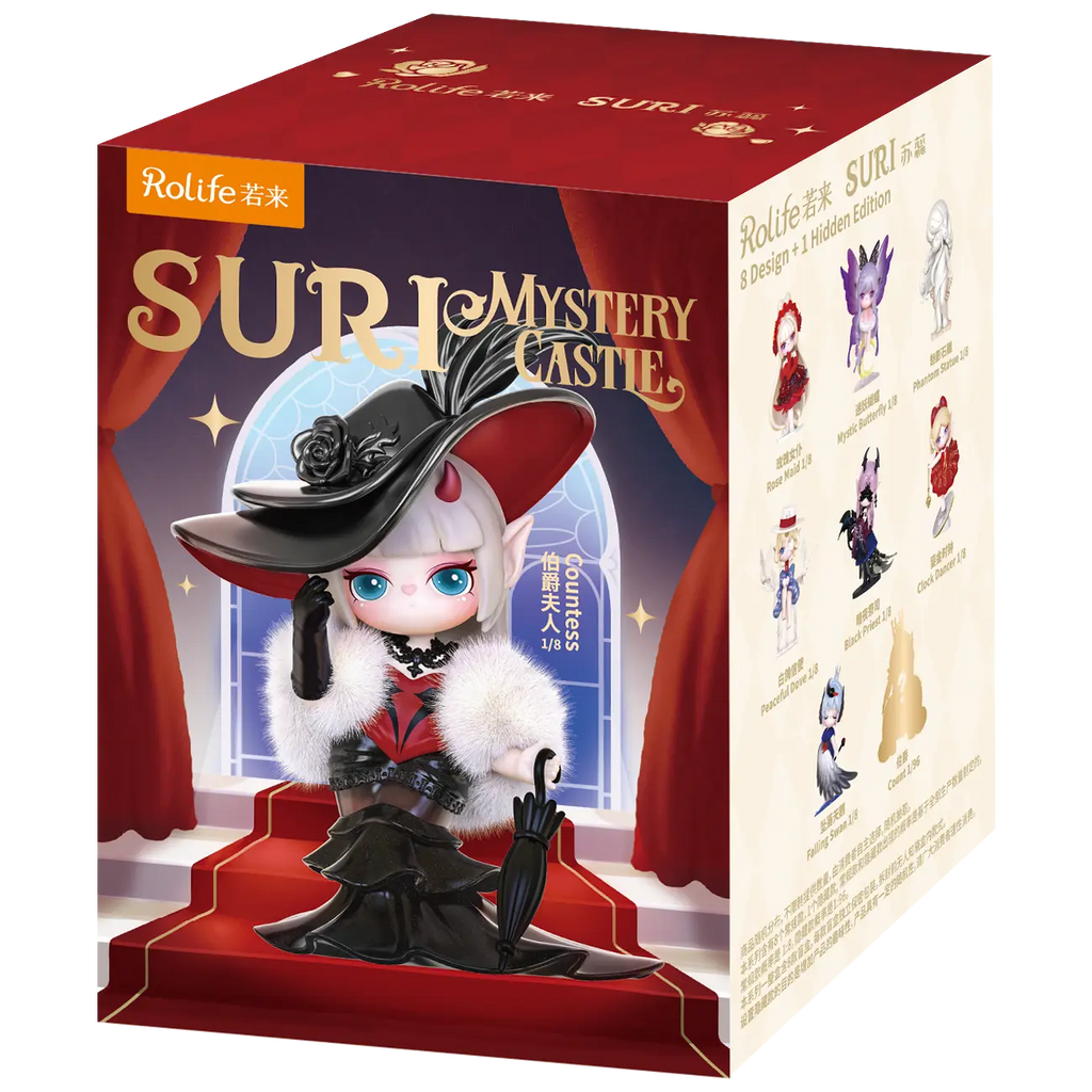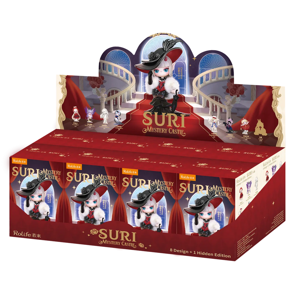 Oeh, durf jij het aan om het mysterie van het kasteel te ontrafelen? De Rolife Suri’s kasteel blind box-serie brengt je een spannende mix van elegantie, duistere charme en pure verzamelkoorts! Elke doos van de 9 is een verrassing, je weet nooit welke Suri erin schuilt tot je haar uitpakt! Misschien is het de Dienstmeid-Suri in dieprood met lange blonde haren die als een waterval om haar heen vallen of het Vlindermeisje met lila vleugels dat dromerig op de maan zit. Het blindboxing-moment is magisch: click, open en daar is ze, jouw Suri!